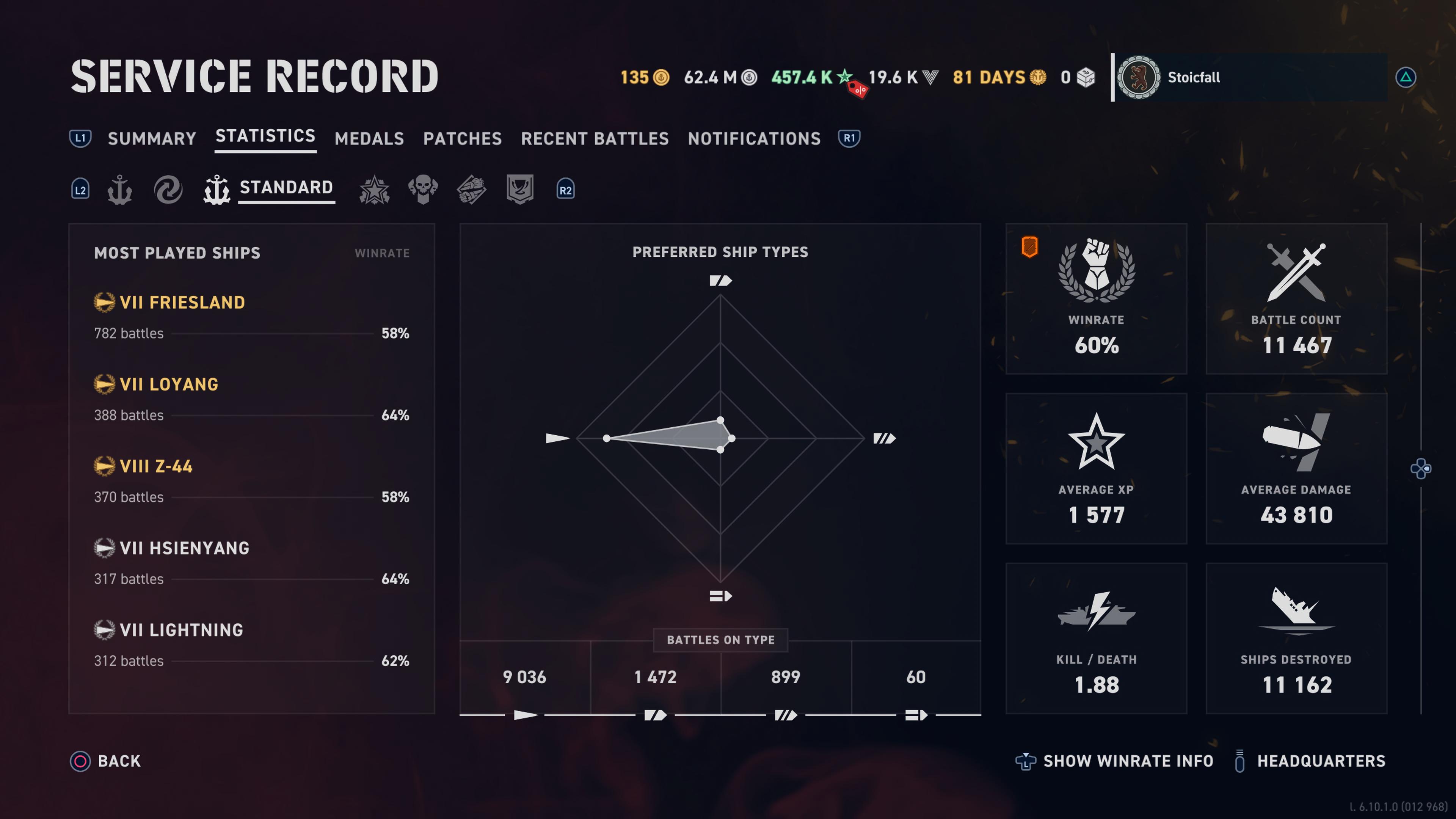 Thankfully the February 2023 update saw improved access to stats, crowned with the summary page you see here. On 6 March of the same year, I played my 10,000th battle (all modes, not just Standard). It took me about two and a half years of 'on and off' play to reach this milestone. Check back soon to see how my stats look after 20,000 battles! (I've already increased my maximum damage and XP.)