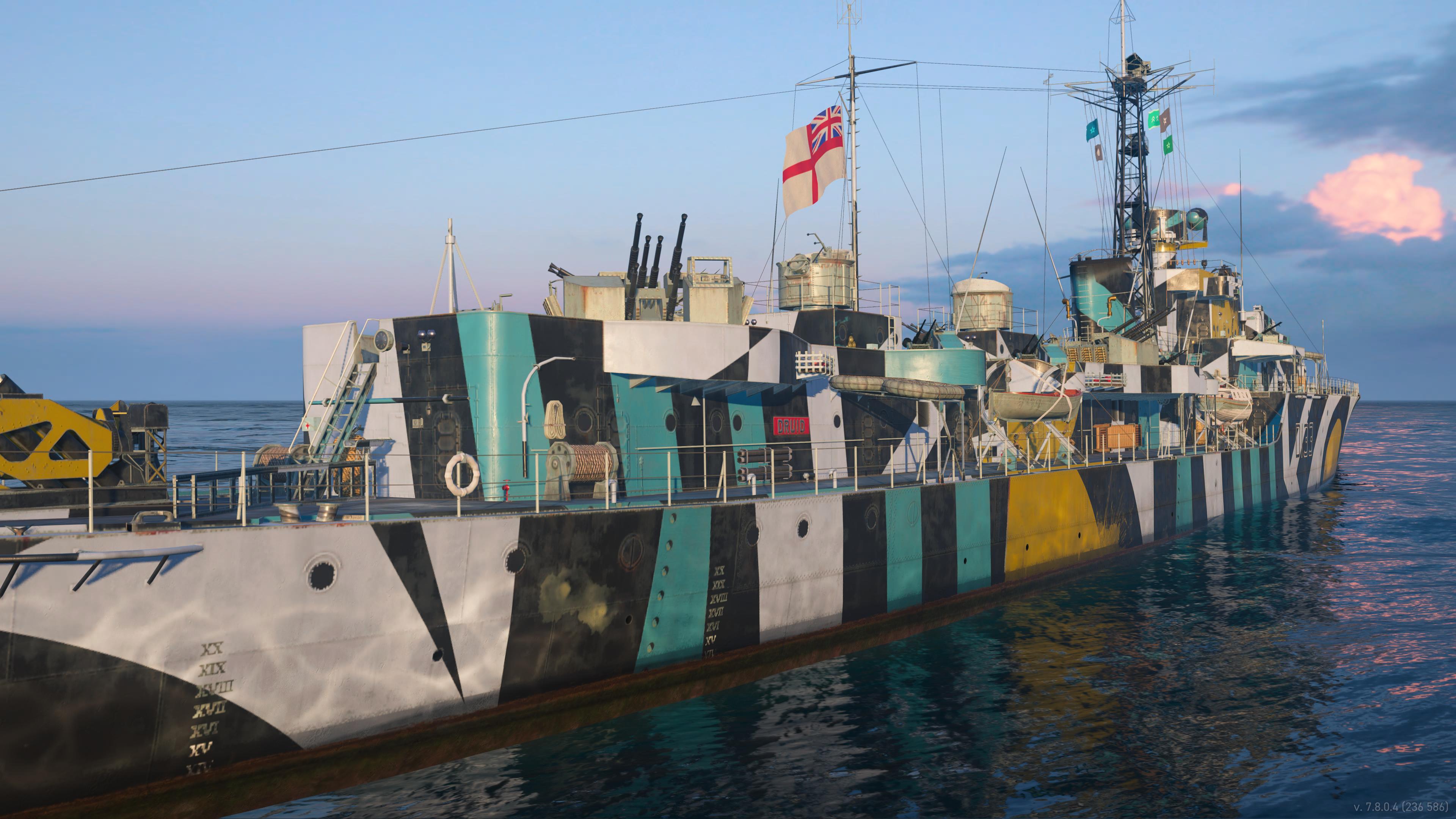 What can I say? I just love the British destroyers. They are unmatched in terms of defensive versatility. This Battle-class destroyer isn't the quickest in its class but it has powerful long-range guns, the usual three minute duration sonar and many smokes. The torpedoes aren't bad either! (Another example.)