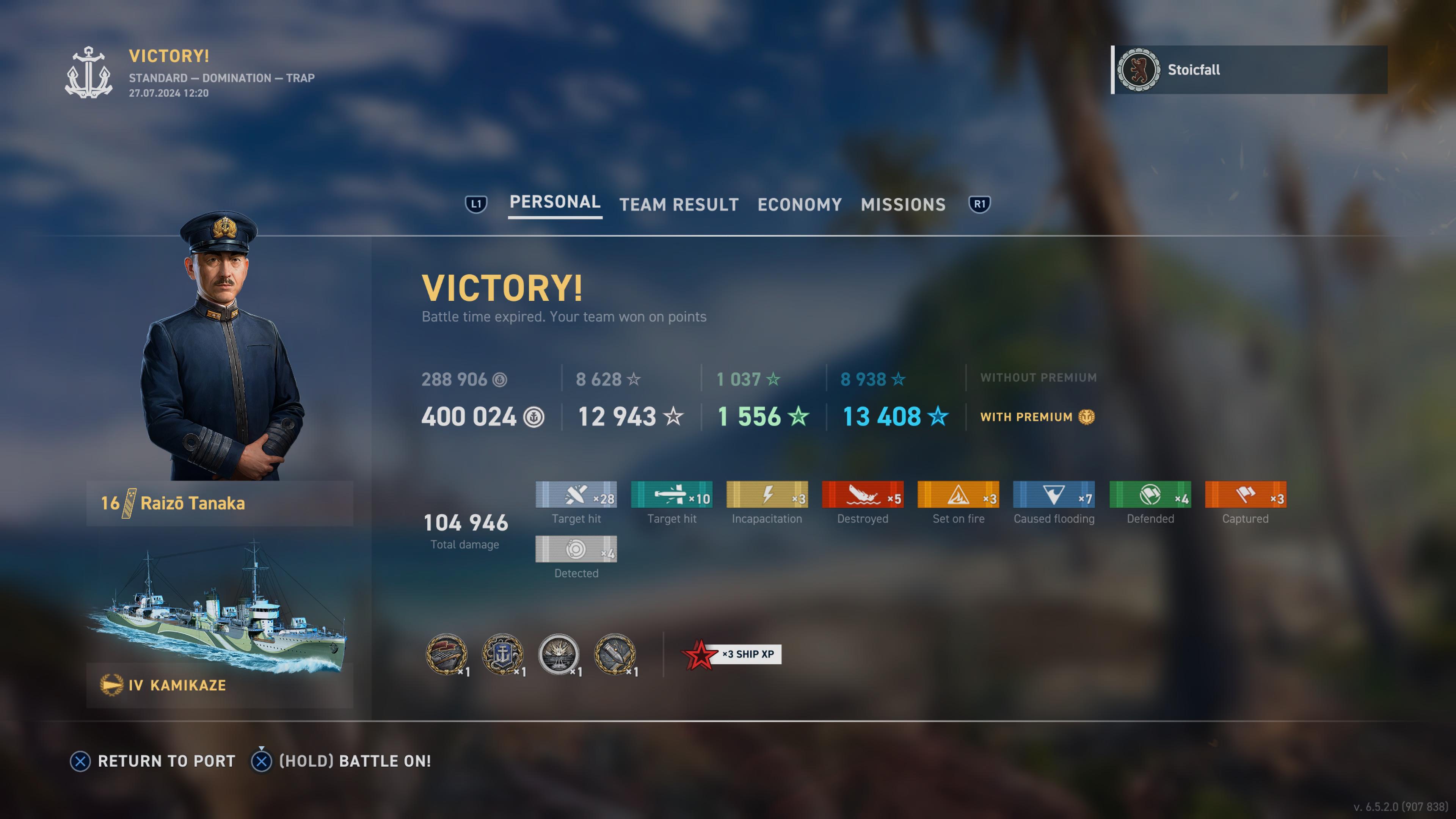 - A Triple Strike with Japanese Tier IV destroyer Kamikaze.