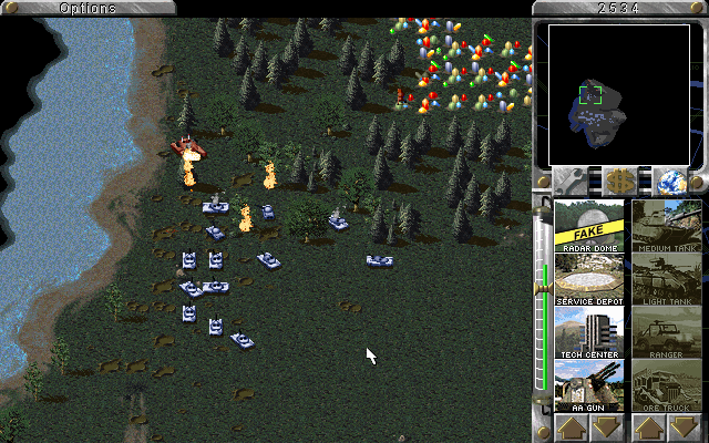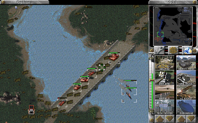 This is a rather strange pic. There were a few enemy units on a bridge. I was systematically destroying the middle section of the bridge with a couple of cruisers, and when it finally collapsed all the units died, except this one tank which fired upon my cruisers. He couldn't move, but he was certainly floating on the water.