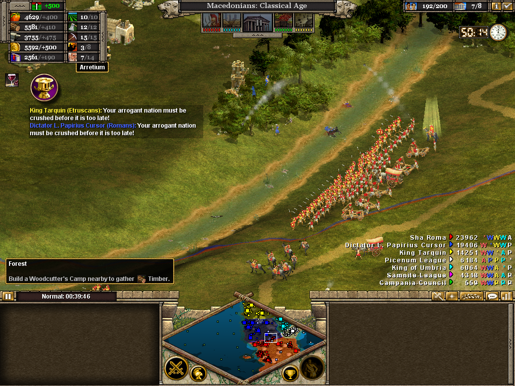 The 4th and 1st are committed as the 5th forms up with replacements, and the Picenums are headed somewhere. The Etruscans continue to wax lyrical. Barracks and stables are already operational around Arretium to shorten the supply lines north.