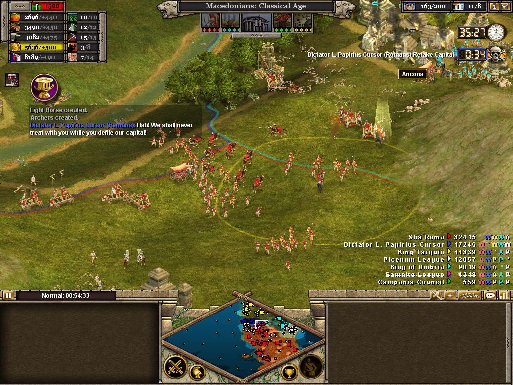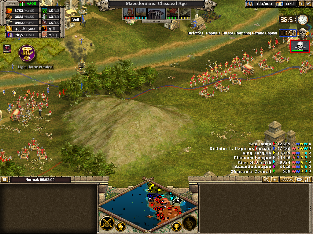 The Etruscan capital is taken. With two minutes to retake it, the assault on their remaining towns begins.