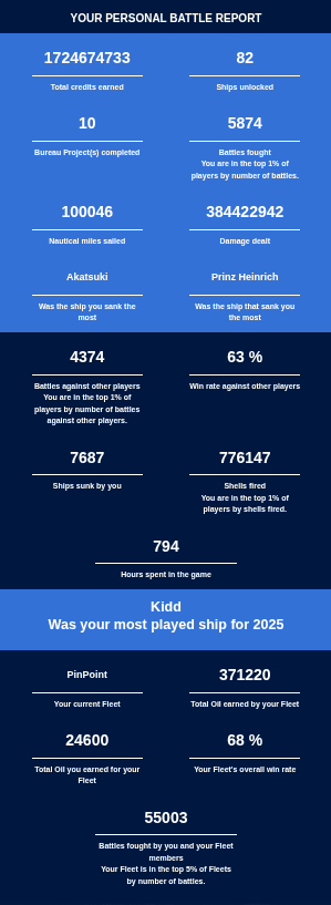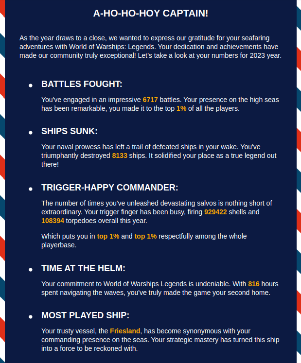 At the start of 2025 Wargaming emailed players of the game with some personal statistics from 2024.